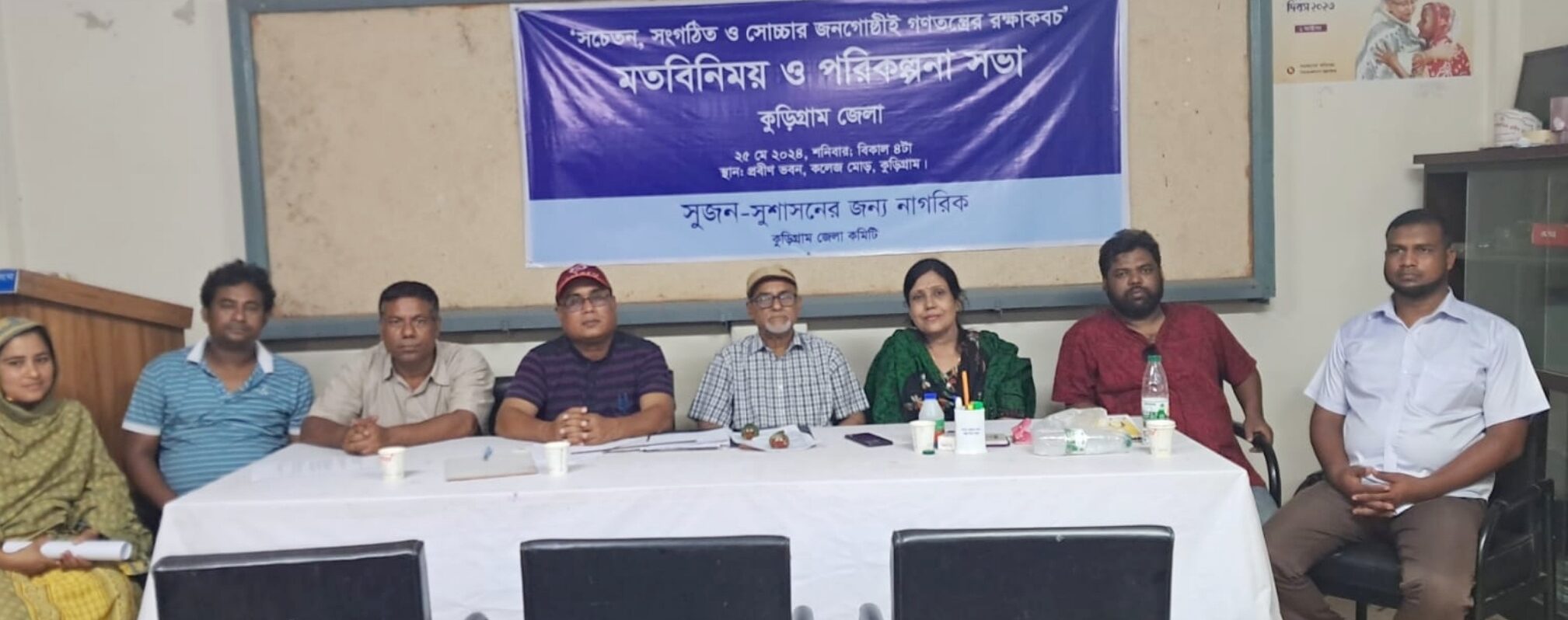 কুড়িগ্রামে সুশাসনের জন্য নাগরিক-সুজন জেলা কমিটির মতবিনিময় ও পরিকল্পনা সভা অনুষ্ঠিত হয়েছে।