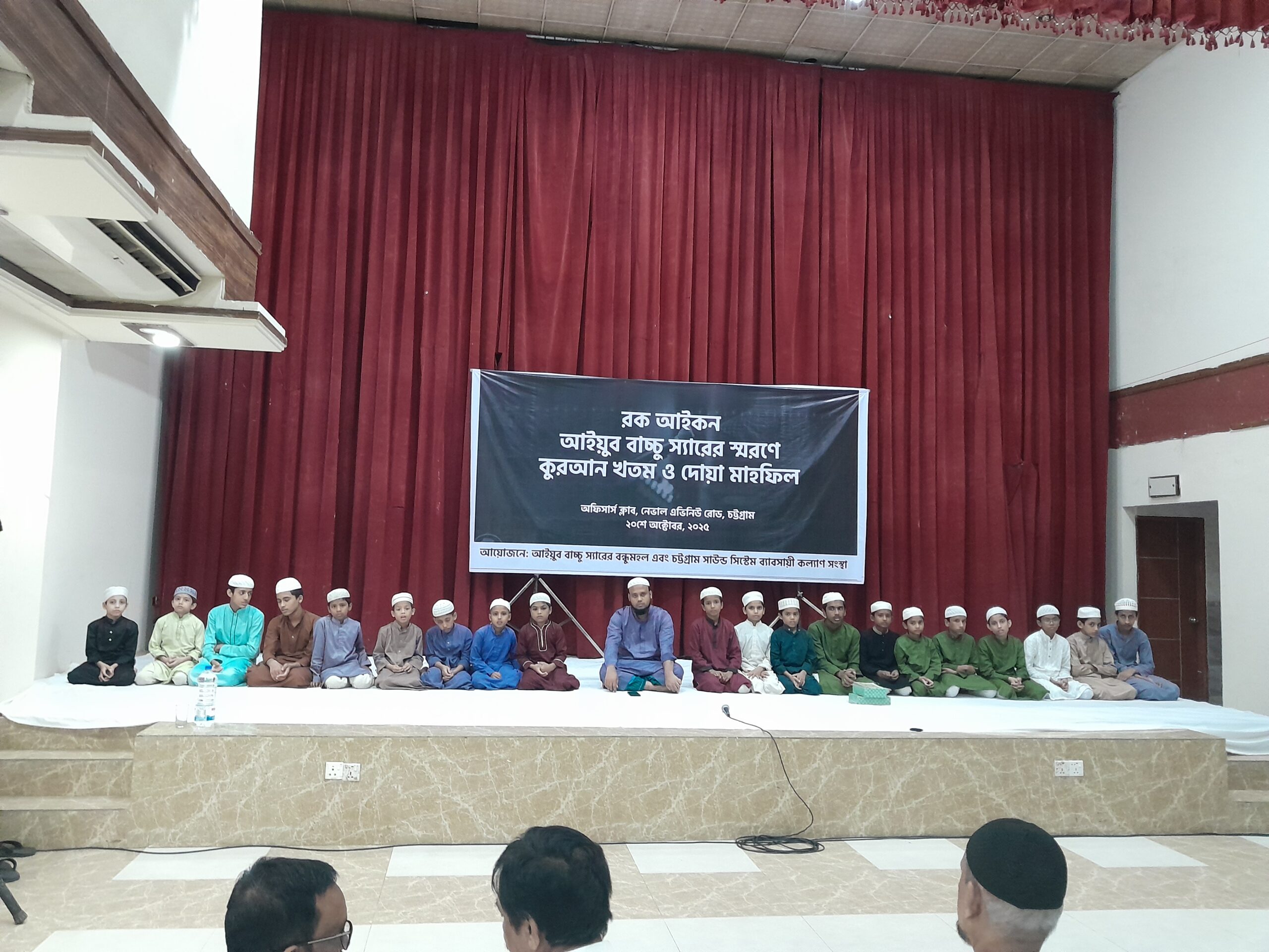 গতকাল মঙ্গলবার (২০ অক্টোবর)  বাংলাদেশের কিংবদন্তি গিটারিস্ট, গায়ক, সুরকার এবং হাজারো হৃদয়ের স্পন্দন আইয়ুব বাচ্চু সপ্তম মৃত্যুবার্ষিকী উপলক্ষে  চট্টগ্রাম সাউন্ড সিস্টেম ব্যবসায়ী কল্যাণ সংস্থার পক্ষ থেকে অফিসার্স ক্লাবে একটি দোয়া মাহফিলের আয়োজন করা হয়েছিল