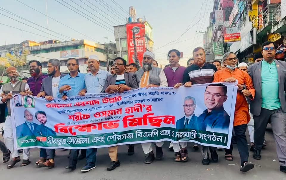 সীতাকুণ্ডে বিএনপির বিক্ষোভ মিছিল: এমপি প্রার্থী ও মহানগর নেতার ওপর হামলার প্রতিবাদ