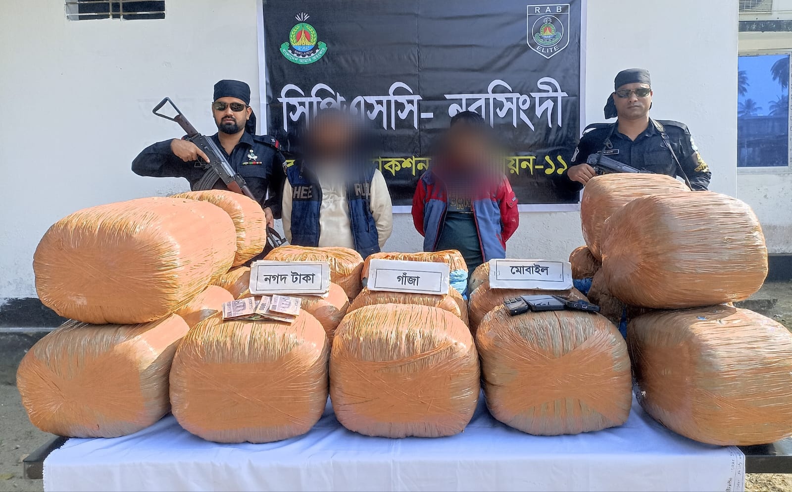 র্যাবের অভিযানে নরসিংদীতে ১০০ কেজি গাঁজাসহ আটক ২