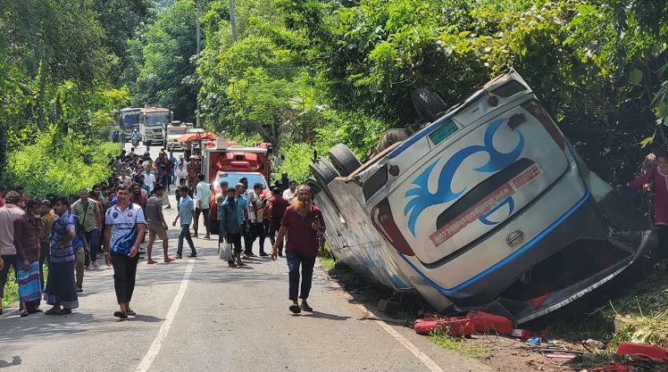 শান্তি পরিবহনের বাস মাটিরাঙ্গায় উল্টে বিপর্যয়, ২ জন নিহত, আহত ৭