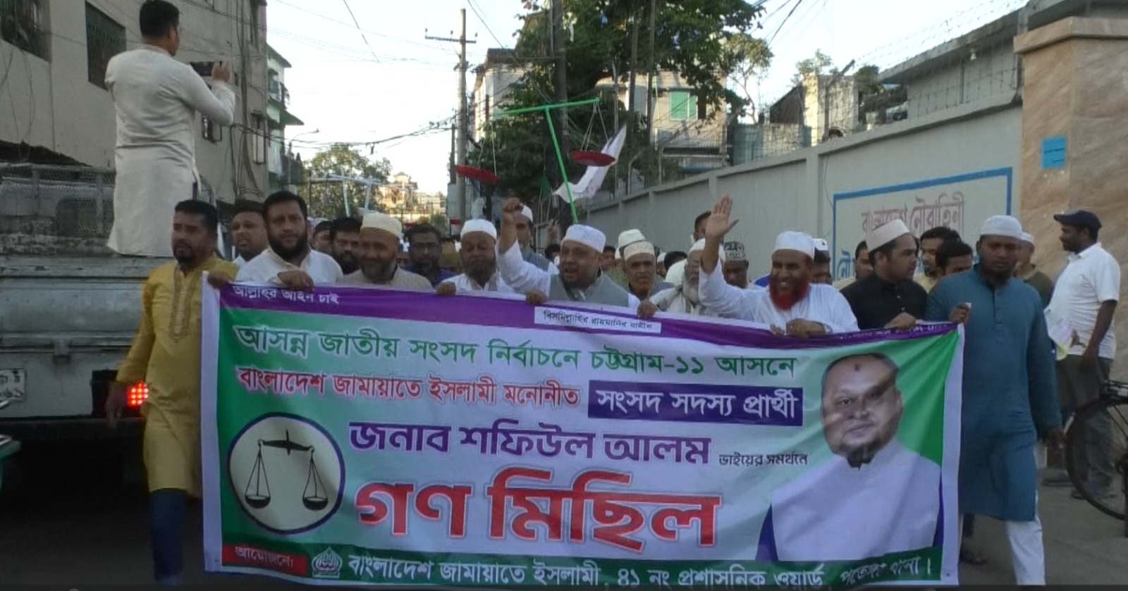 চট্টগ্রামের পতেঙ্গায় বাংলাদেশ জামায়াতে ইসলামী মনোনীত চট্টগ্রাম-১১ আসনের সংসদ সদস্য প্রার্থী আলহাজ্ব শফিউল আলমের সমর্থনে বৃহৎ গণমিছিল অনুষ্ঠিত হয়েছে। গত