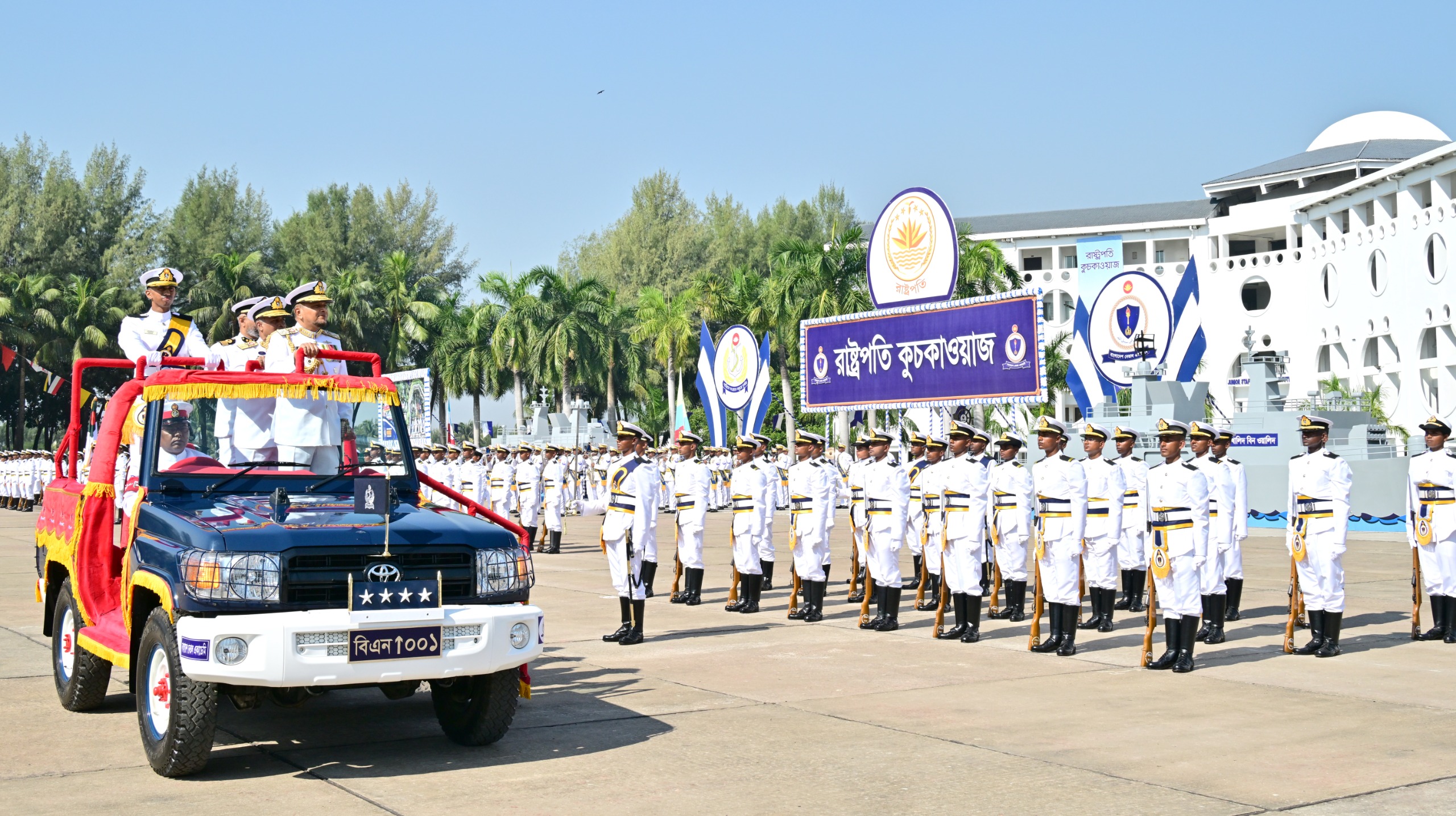 বাংলাদেশ নেভাল একাডেমিতে শীতকালীন রাষ্ট্রপতি কুচকাওয়াজের আয়োজন করা হয়েছে, যেখানে নৌবাহিনীর মিডশিপম্যান ২০২৩ ব্যাচের প্রশিক্ষণ শেষে নবীন কর্মকর্তারা সাব-লেফটেন্যান্ট