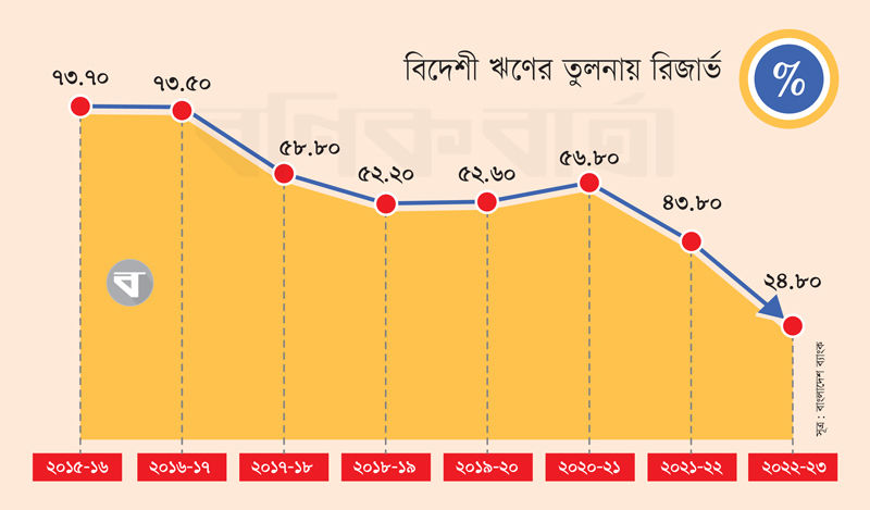 বৈদেশিক মুদ্রার রিজার্ভ কিছুটা কম থাকলেও আন্তর্জাতিক দায়দেনা পরিশোধে বেশ স্বস্তিতে ছিল বাংলাদেশ। যথাসময়ে বিদেশী ঋণ ও ঋণপত্রের (এলসি) দায়