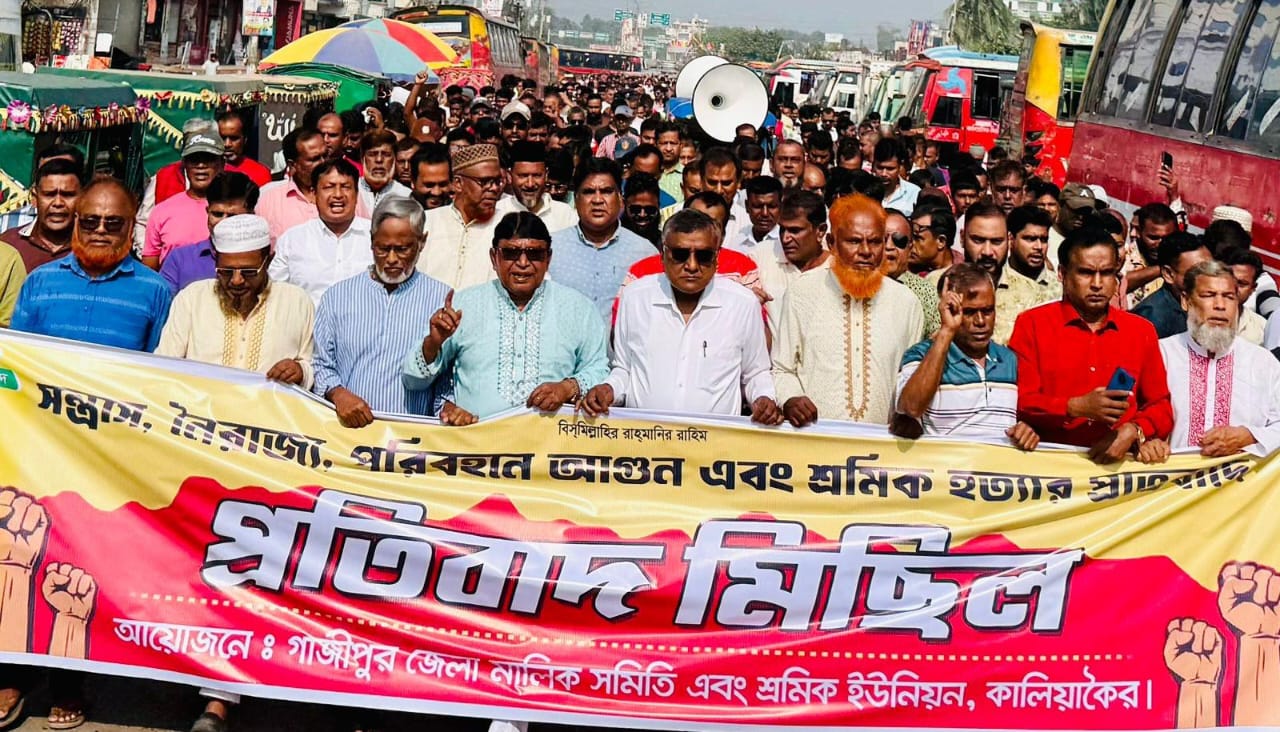 কালিয়াকৈরে পরিবহন শ্রমিক হত্যার প্রতিবাদে বিক্ষোভ মিছিল ও প্রতিবাদ সভা অনুষ্ঠিত