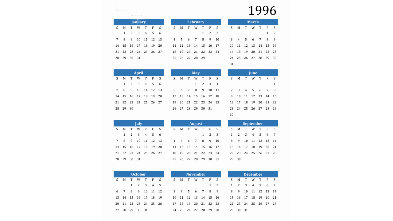 ১৯৯৬ সাল ও ২০২৪ সালে একই ক্যালেন্ডার