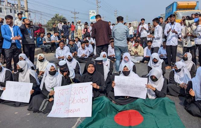 ৮ দফা দাবিতে ঢাকা-ময়মনসিংহ মহাসড়কে কৃষি ডিপ্লোমা শিক্ষার্থীদের ব্লকেড