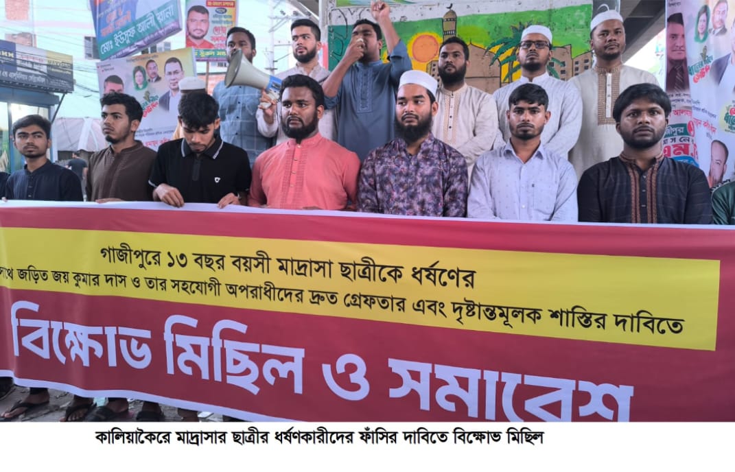 কালিয়াকৈরে মাদ্রাসার ছাত্রীর ধর্ষণকারীদের ফাঁসির দাবিতে বিক্ষোভ