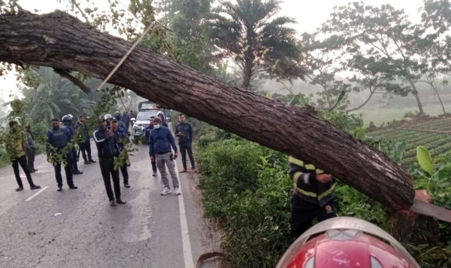 মাদারীপুরে গাছ ফেলে অবরোধ, দুই ঘণ্টা বন্ধ থাকে প্রধান মহাসড়ক
