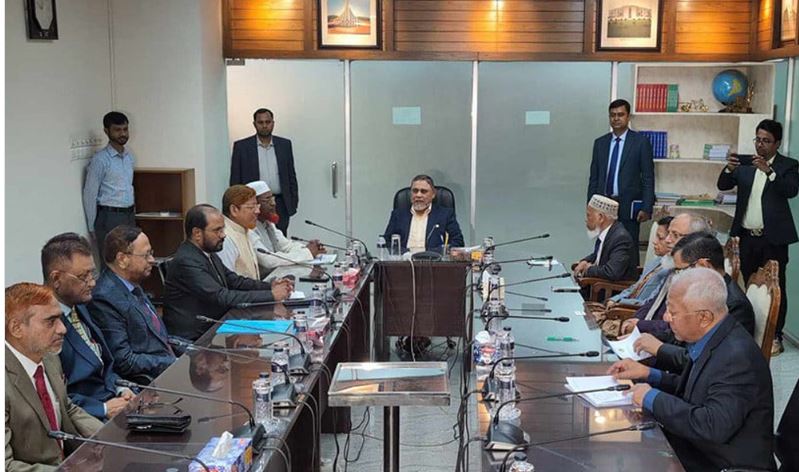 প্রধান নির্বাচন কমিশনার এ এম এম নাসির উদ্দীন-এর সঙ্গে জামায়াতের নায়েবে আমীর আবু তাহেরের নেতৃত্বাধীন একটি প্রতিনিধিদল বৈঠক করছেন। বৈঠক