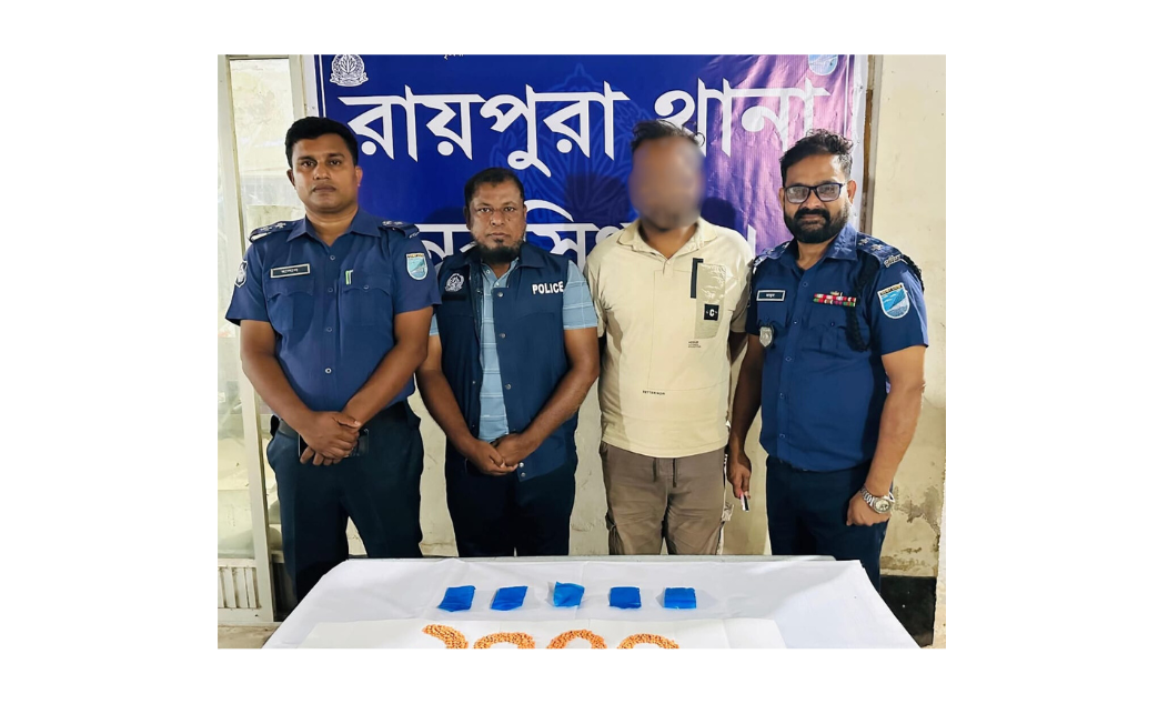 রায়পুরায় ১০০০ ইয়াবাসহ মাদক ব্যবসায়ী গ্রেপ্তার