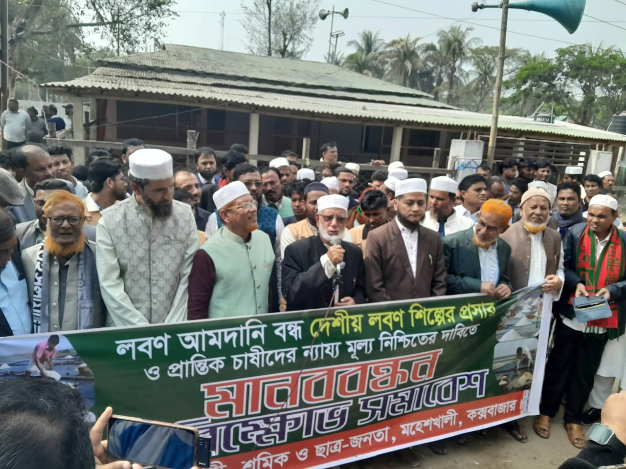 ১ লাখ টন লবণ আমদানির সিদ্ধান্তের প্রতিবাদে মহেশখালীতে মানববন্ধন ও বিক্ষোভ