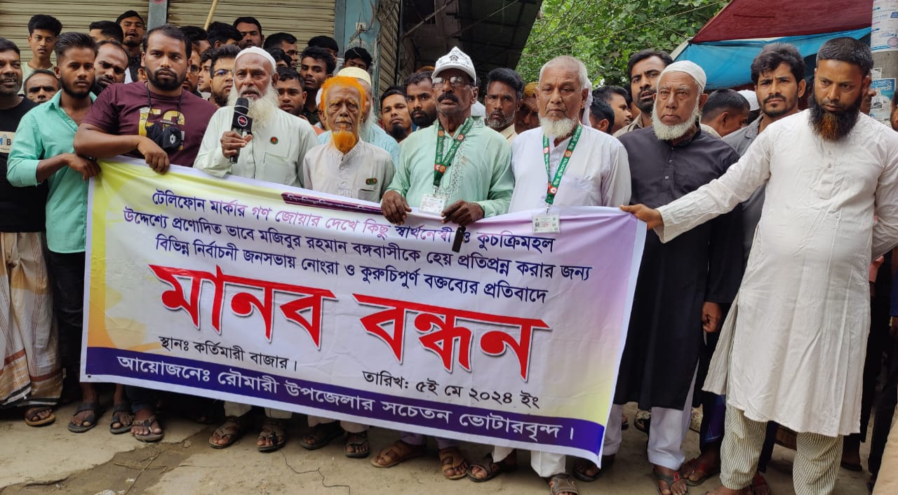 রৌমারীতে অপপ্রচারের প্রতিবাদে বিক্ষোভ ও মানববন্ধন